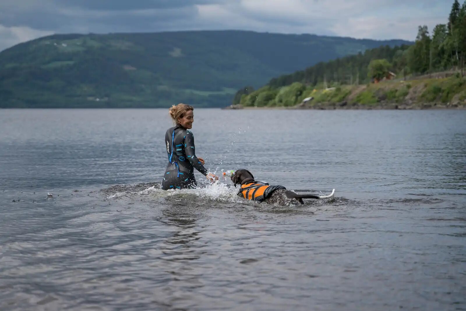 Linn Beate szeret a vízben lenni a kutyájával: “Akkor jobban kontrollálom és támogathatom őt, ha valami történne.” Ha példát mutatsz, akkor valószínűbb, hogy a kutyád követni fog téged a vízbe.