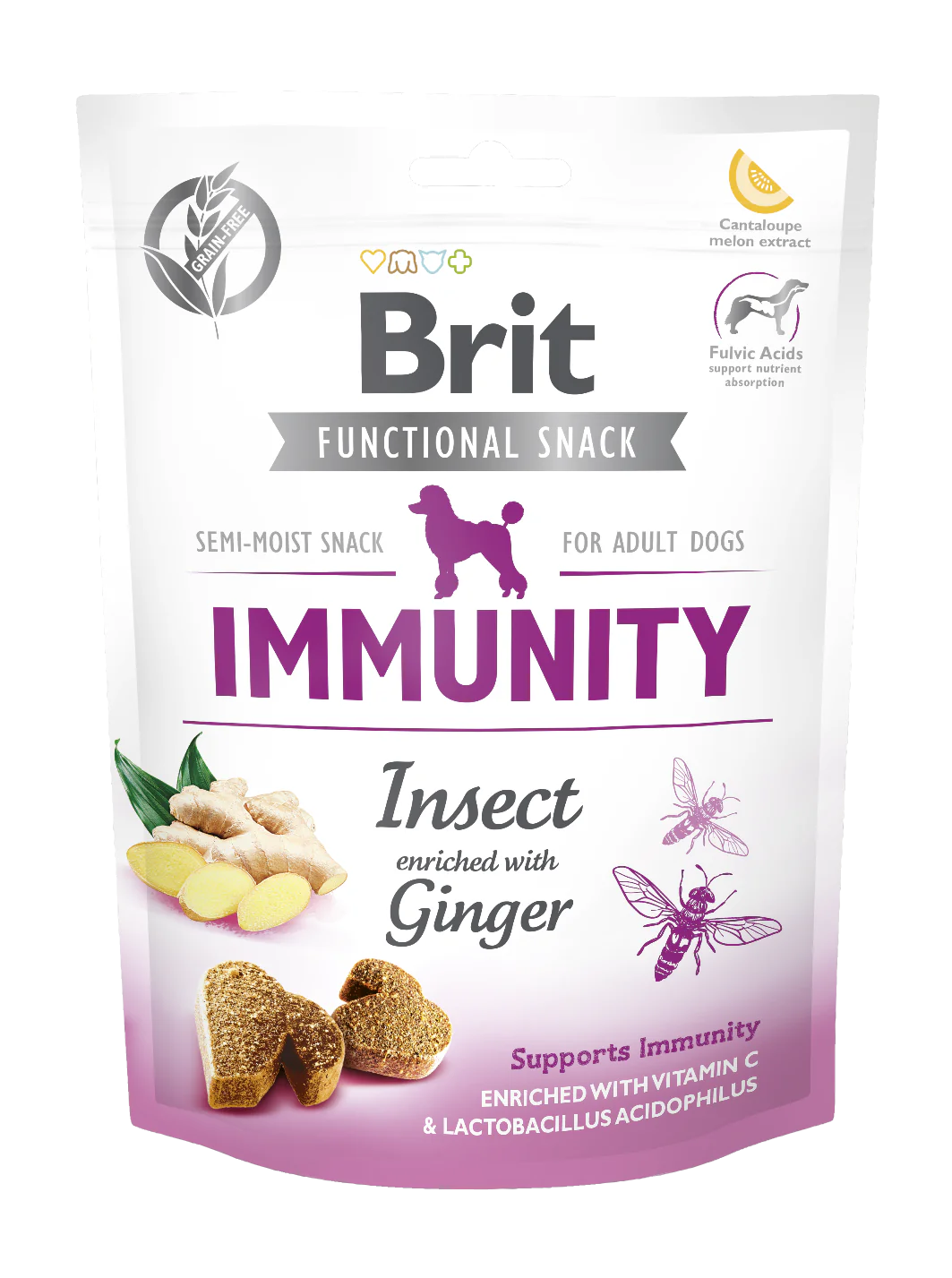 A Brit Care Functional Snack Immunity Insect támogatja az immunrendszert. C-vitaminnal és Lactobacillus acidophilus-szal dúsítva az immunrendszer serkentése érdekében.
