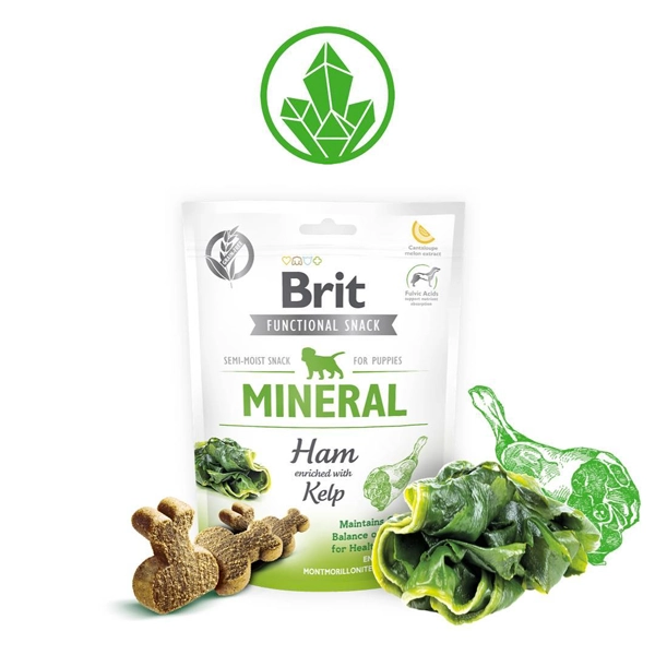 A Brit Care Functional Snack Mineral Puppy fenntartja az egészséges növekedéshez szükséges ásványok optimális egyensúlyát (félkemény jutalomfalat, tengeri moszattal dúsított sonka). Montmorillonittal és tojáshéjjal dúsítva az optimális ásványi egyensúly érdekében.fenntartja az ásványi anyagok optimális egyensúlyát az egészséges növekedés érdekében.