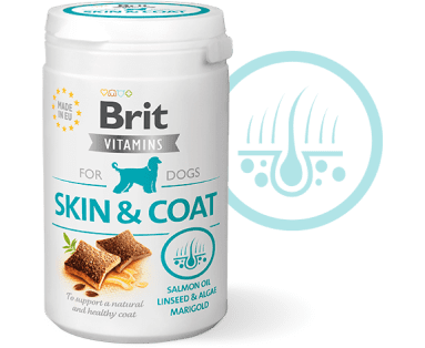 A Brit Vitamins Skin & Coat egy funkcionális félpuha kiegészítő eledel, mely támogatja a természetes és egészséges szőrzetet. Felnőtt kutyáknak ajánlott vedlés idején, valamint fokozott szőrzetápolást igénylő kutyáknak.