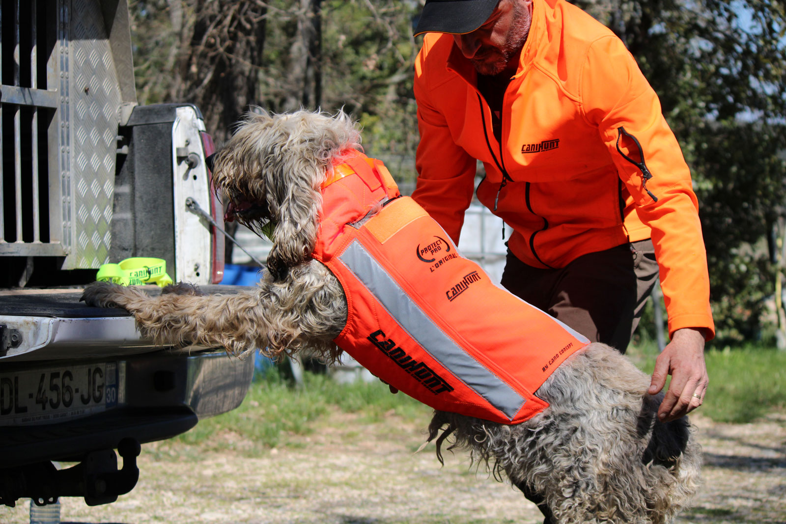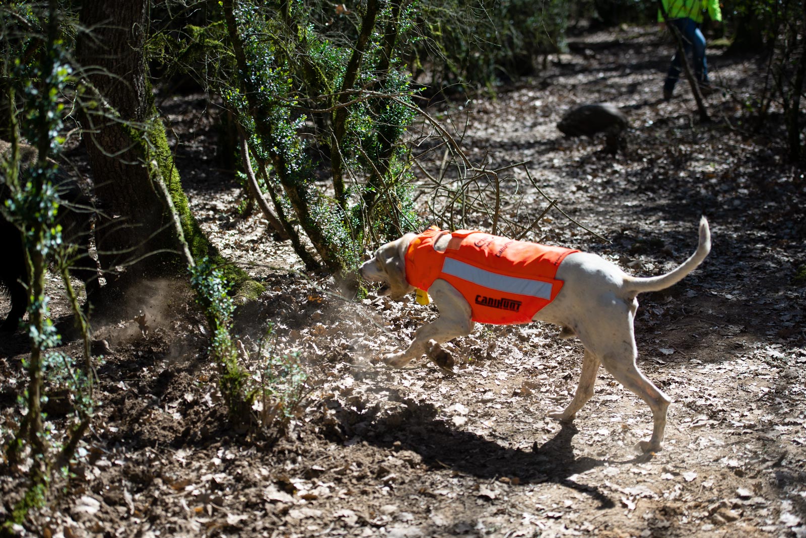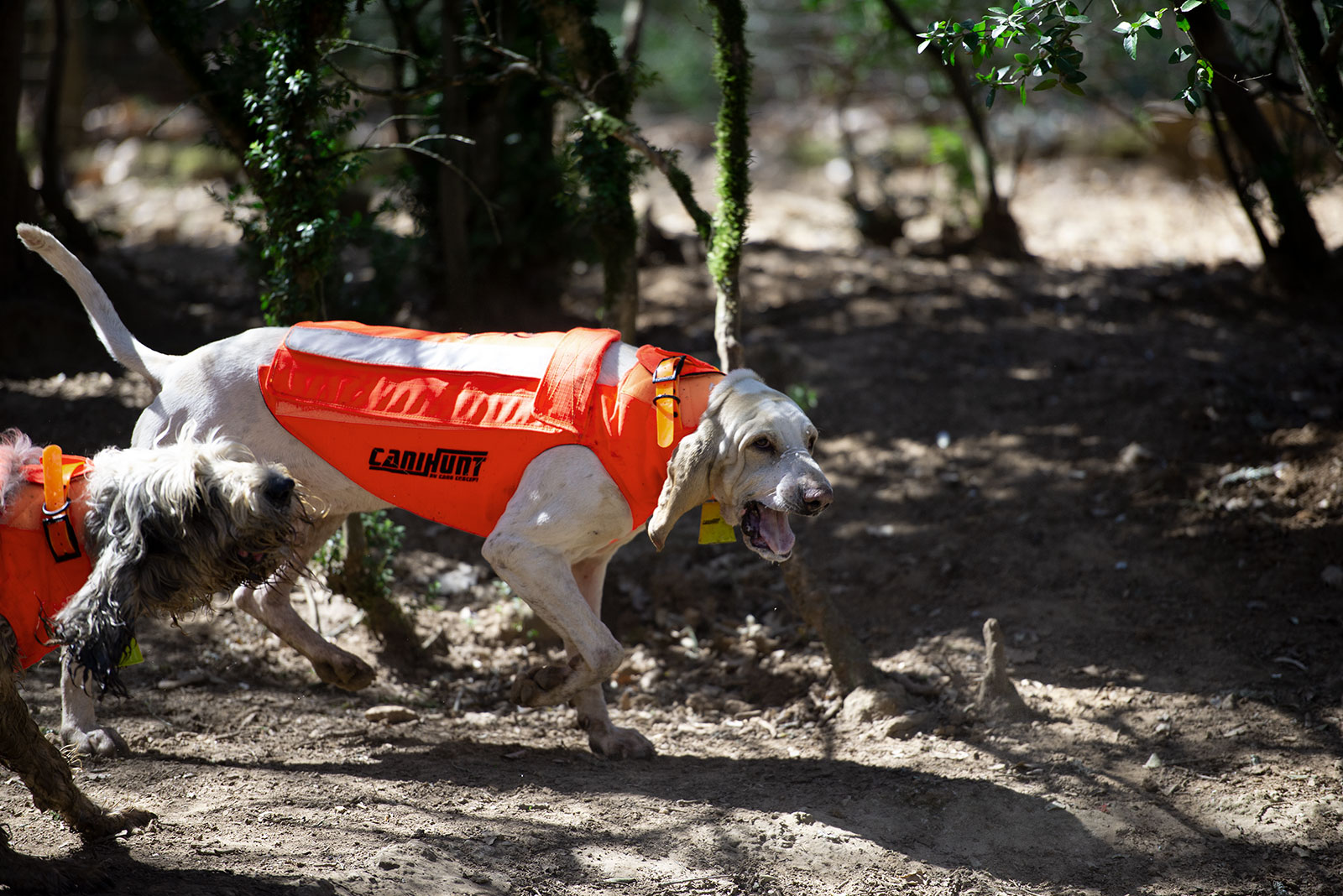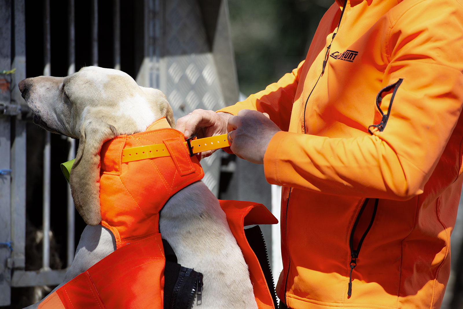 - Fluoreszkáló narancssárga szín: láthatóvá teszi a kutyát a vadászat során, de jelzi azt harmadik félnek is (vadászok, autók stb.).