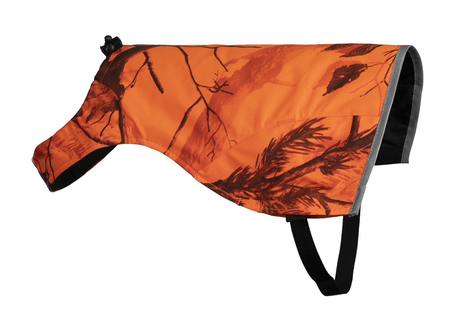 A Non-stop Camo takaróban a kutya jól látható a terepen az élénk narancssárga színnek, a fényvisszaverő nyomatnak és a 3M fényvisszaverő részleteknek köszönhetően. A vadon élő állatok szemszögéből nézve az álcázó mintával ellátott ruha beleolvad a környezetbe. A takaró erős és tartós nylon ripstop anyagból készült. A megerősített szegély biztosítja, hogy a takaró mindig megőrizze alakját.
