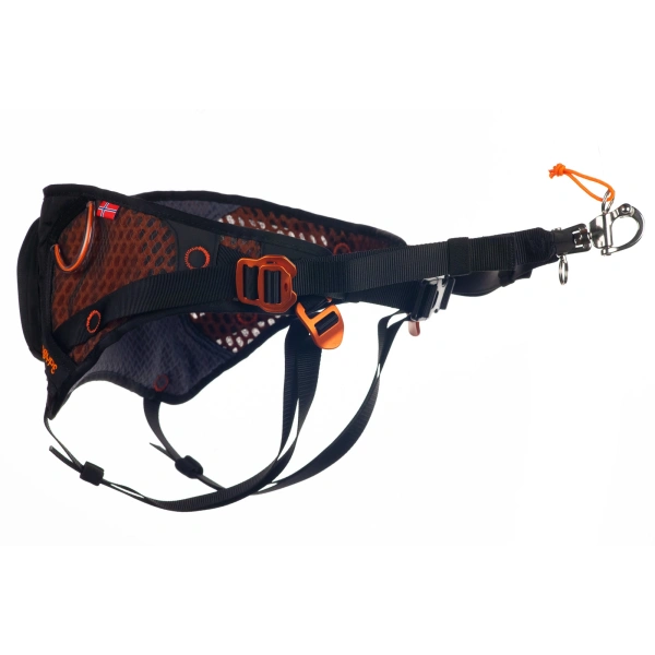 A Non-stop Løype öve egy innovatív öv, amelyet kifejezetten kutyával való síelésre fejlesztettek ki, de remekül használható futáshoz is. Technikai anyagból készült, és úgy alakították ki, hogy elősegítse az optimális síelési technikát.