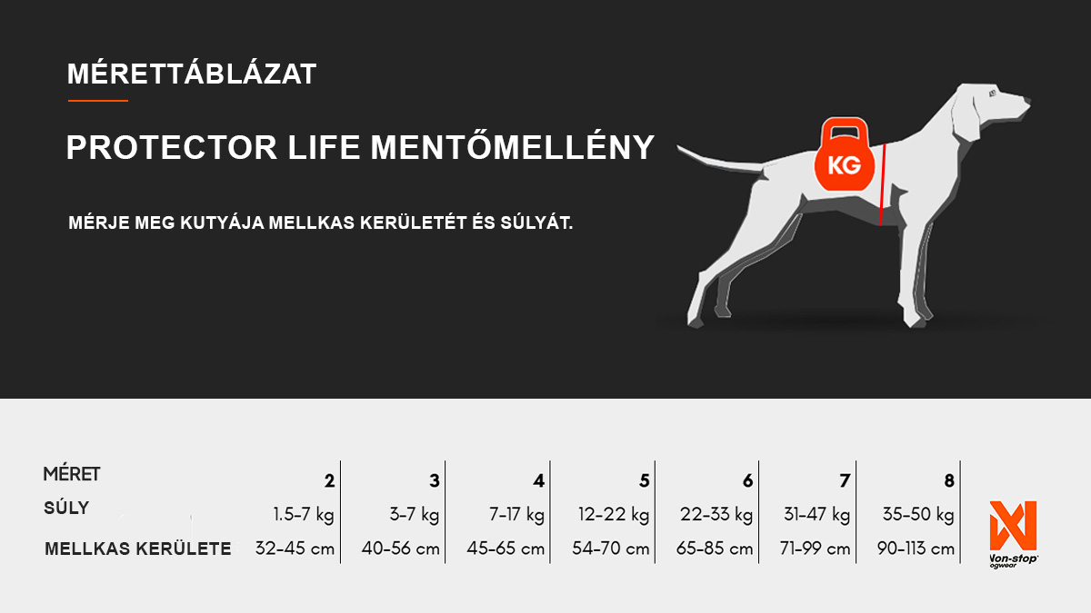 A Protector Life mentőmellény 2-től 8-as méretig elérhető.