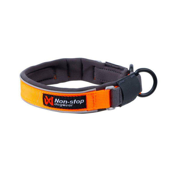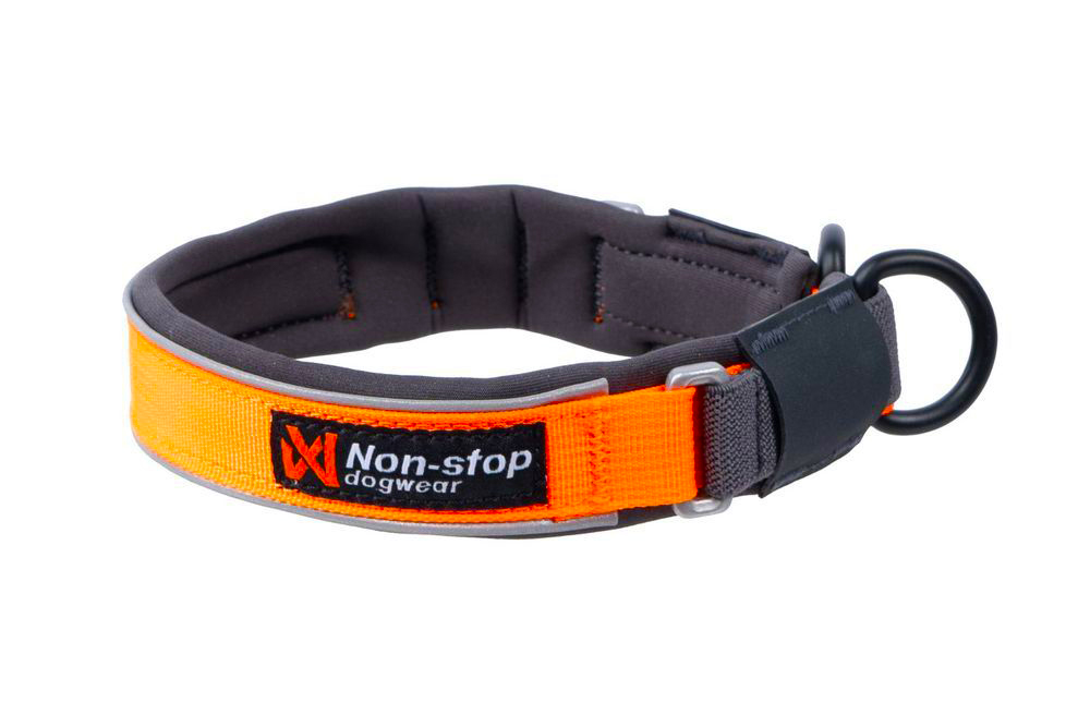 A telített narancssárga szín a kettős 3M fényvisszaverő csíkkal kombinálva nagymértékben javítja a láthatóságot távolról is. A nyakörv kettős D-gyűrűvel rendelkezik a póráz rögzítéséhez, ebben az állapotban statikus nyakörvként működik. A puha neoprén bélés nagy kényelmet biztosít és megakadályozza a szőrvesztést és a bőr kidörzsölődését.
