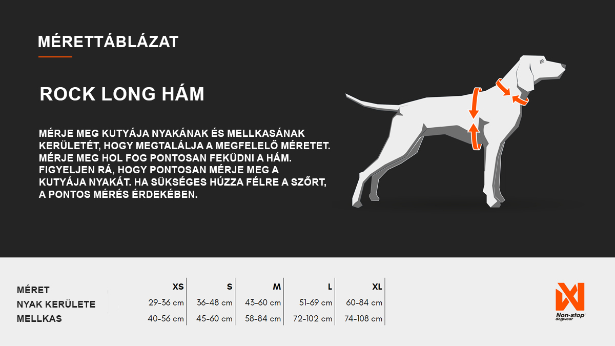 A Non-stop Rock Long hámja egy többcélú kutyahám, amelyet húzás közbeni erőátvitelre terveztek, így alkalmas mindennapi sétákra és túrákra, valamint akadályversenyekre vagy kerékpározásra kedvenceddel.
