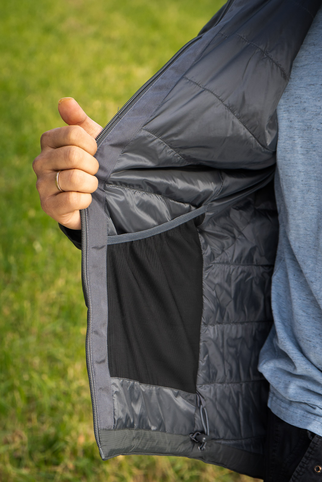 A Trail isolator 2.0 kabát férfiaknak készült verziója jellegzetes férfi szabással rendelkezik, rugalmas zsinórral állítható szegéllyel, valamint előre beállított és rugalmas mandzsettákkal és kapucnival, amelyek optimális illeszkedést biztosítanak.