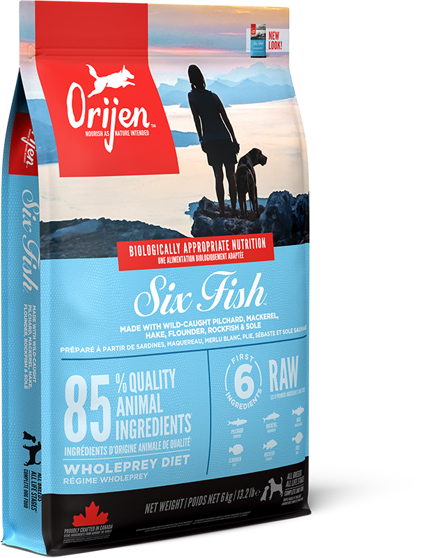 Biológiai követelményeknek megfelelő, friss, helyi alapanyagokból készült táp, amely hatféle, halászatból származó halhúst tartalmaz. Az Orijen tápra jellemző a 38% biológiai követelményeknek megfelelő fehérjetartalom, aminek köszönhetően megközelíti kutyája természetes táplálkozási szokásait.